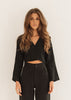 The Avalon Tie-Up is a long sleeve kimono-style top with a front tie closure. You can also style this piece as a wrap top!