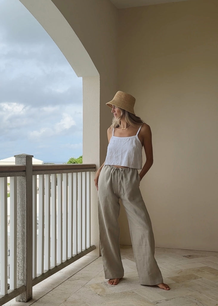Our Watson Pants are a our new lounge-worthy relaxed pants with an elasticated, drawstring waistband. Take these to the beach, on a slow morning at the cafe or dress them up for dinner. Styled as a set with our Watson Button-Up.